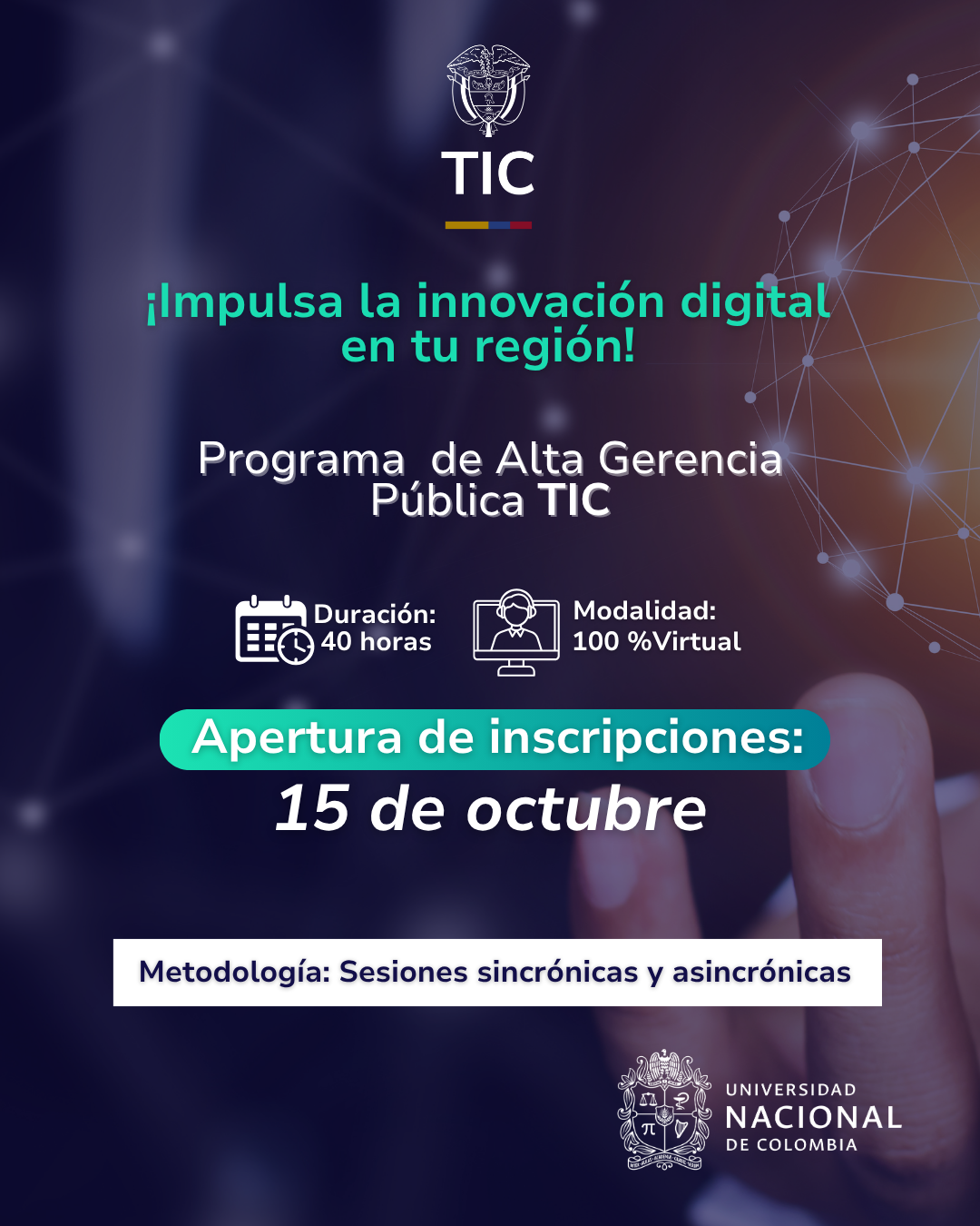 Con el propósito de consolidar un Estado más eficiente y transparente, el Ministerio de Tecnologías de la Información y las Comunicaciones —MinTIC—, en alianza con la Facultad de Minas de la Universidad Nacional de Colombia lanzó el Programa de Alta Gerencia Pública TIC. Las inscripciones están abiertas.